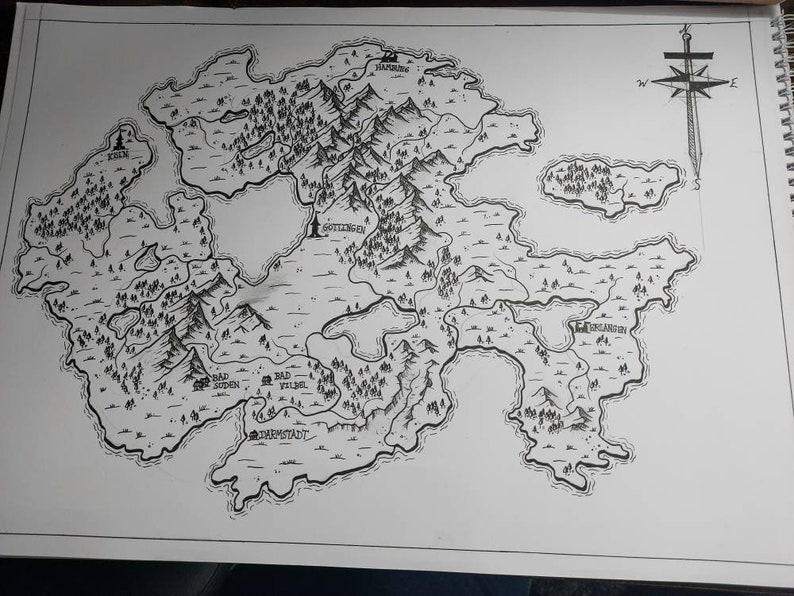 A3 Custom Hand Drawn Fantasy Map Etsy Norway