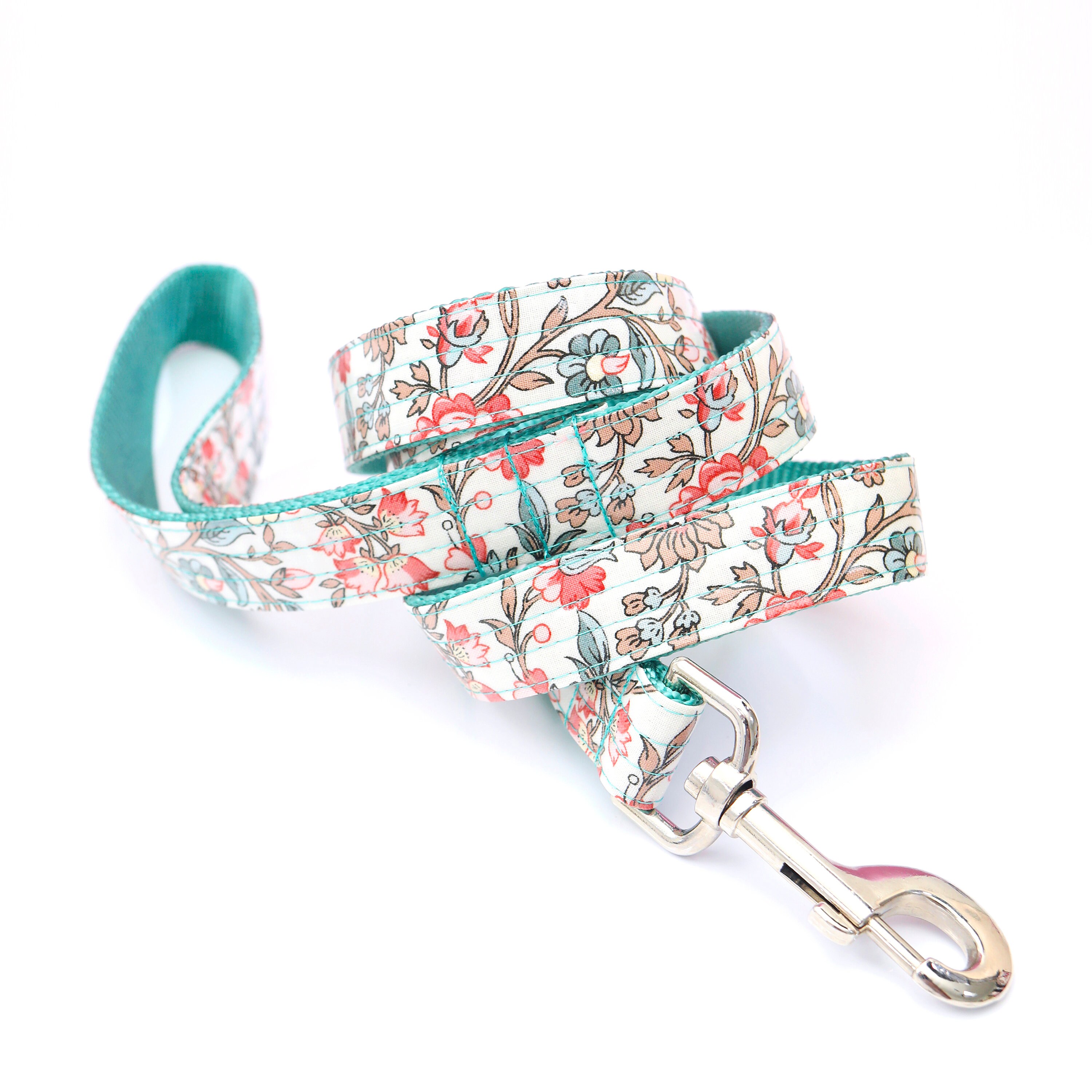 Emma Pink Teal Floral Laminated Cotton Dog Leash 4 Etsy Australia